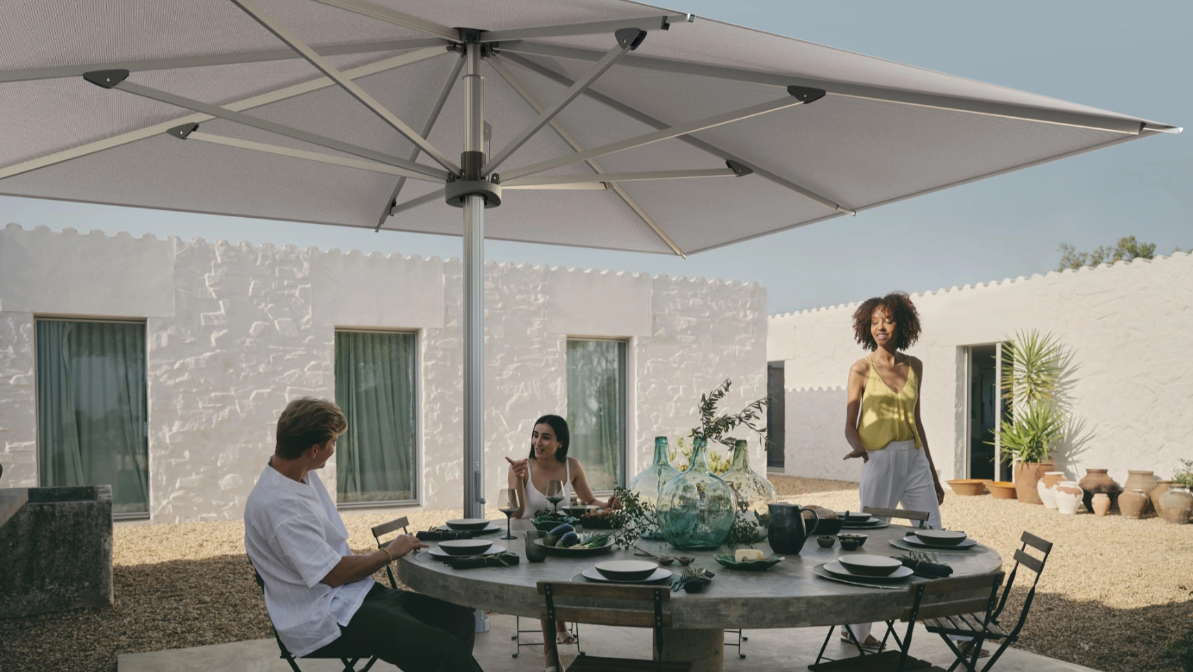 Der PALAZZO Noblesse beeindruckt durch seine robuste Verarbeitung, modernes Design und vielseitige Anpassungsmöglichkeiten. Mit einer Windstabilität von bis zu 95 km/h und patentiertem Öffnungssystem bietet dieser Schirm höchste Zuverlässigkeit und Komfort. Individuelle Sonderanfertigungen und professionelle Zusatzoptionen machen ihn zur idealen Wahl für anspruchsvolle Outdoor-Bereiche.
